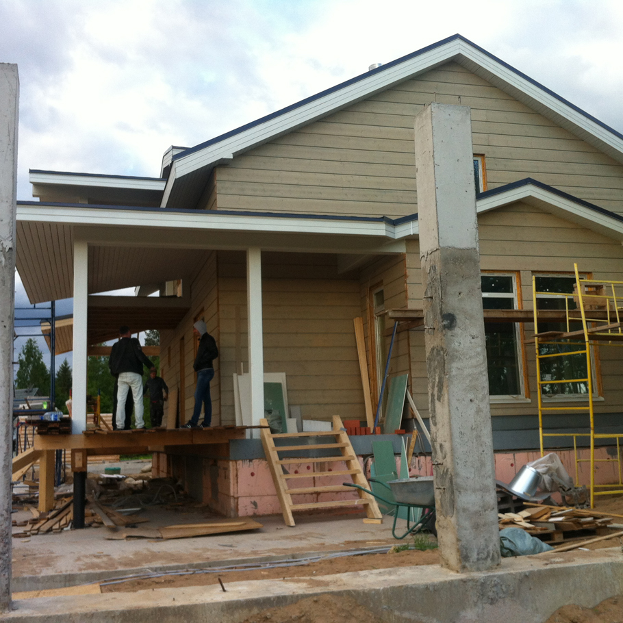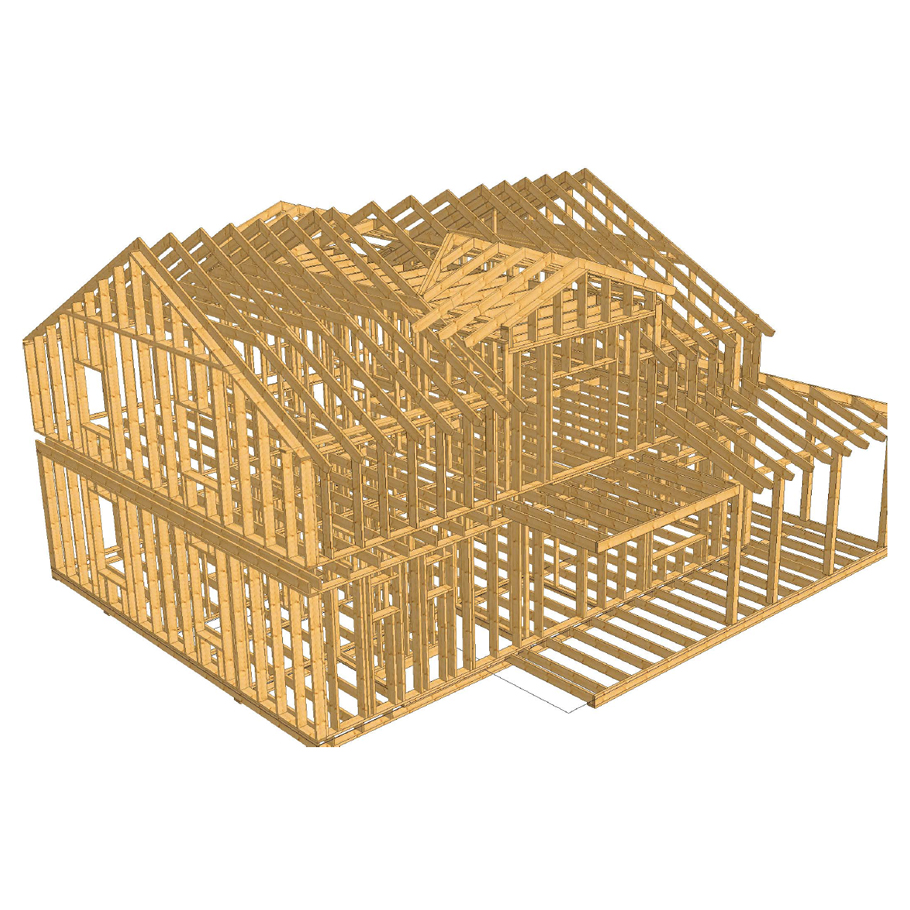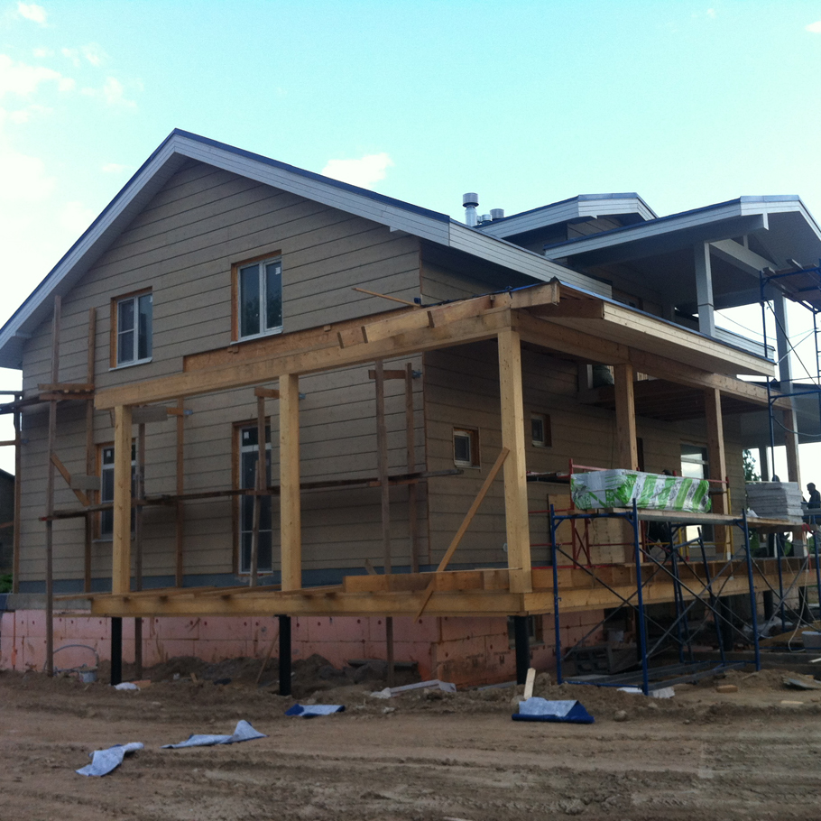 Вид готового каркасного коттеджа из ЛВЛ бруса |