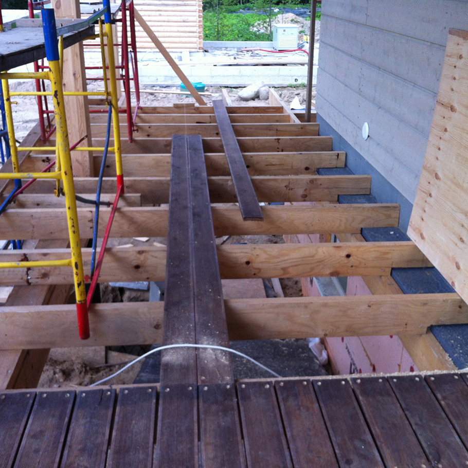 | Монтаж террасной доски по лагам из ЛВЛ бруса |